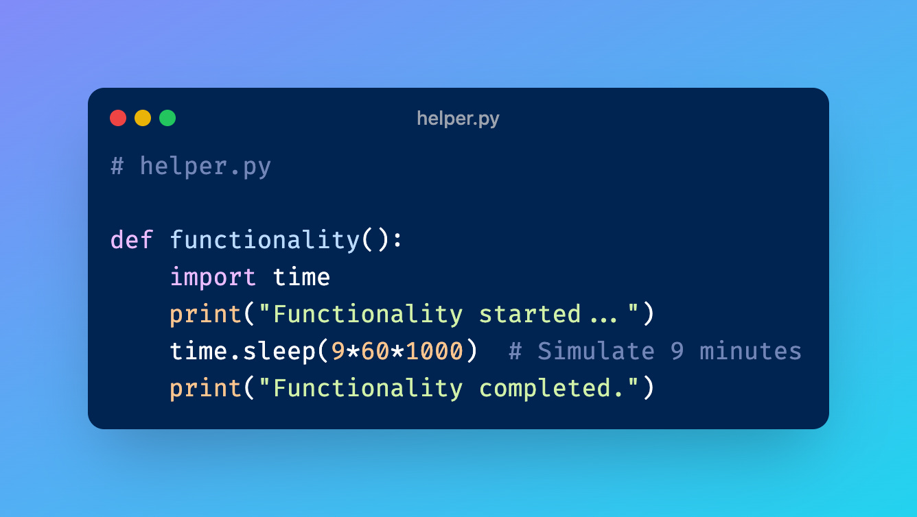 }Also, make sure your logic isn’t accidentally waiting on the thread itself — always run the heavy task asynchronously using Python threads or other techniques.