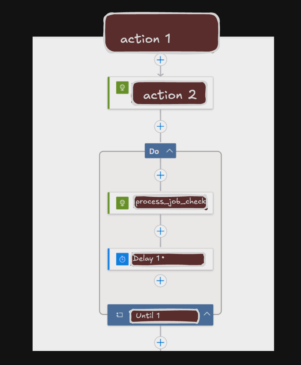 After receiving the job_id, the Logic App calls a second Azure Function (e.g., /status/function1) in a loop until the task completes.